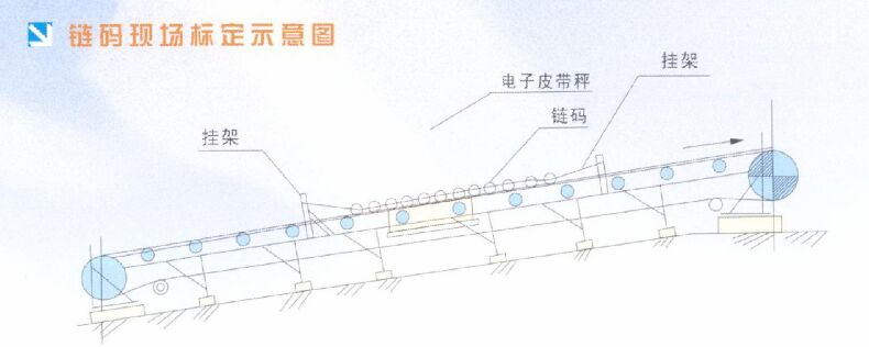 链码模拟皮带上每米物料的负荷置于运行中的皮带上,两端用软绳呈八字形牵拉以防走偏或同皮带一起滑行,其链码工作长度覆盖电子皮带秤的称重区域以及称重区域前后两组托辊。记录皮带一圈的长度和运行的圈数,与链码的标称值之积作为基准值,以称重仪表在上述情况下的累积量为基准值比较就能确定电子皮带秤的实际误差是否在允许范围内,便能检定其计量精度是否合格,并通过校准使其在误差允许范围内。
